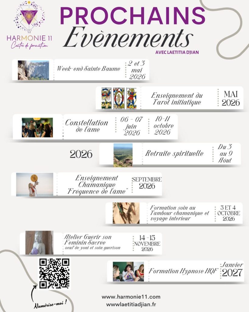 Chaque soirée porte une thématique particulière, permettant d’explorer différentes étapes du chemin intérieur : guérison du cœur, libération et renaissance, ombre et lumière, vision, intégration ou encore voyage de l’âme.